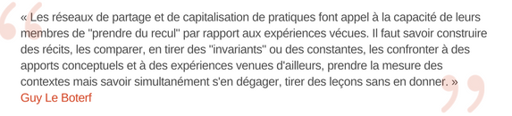 Transférer l'expérience suppose une méthode : le transfert n'est pas seulement le récit d'une pratique. Celle-ci est composée de 4 étapes :